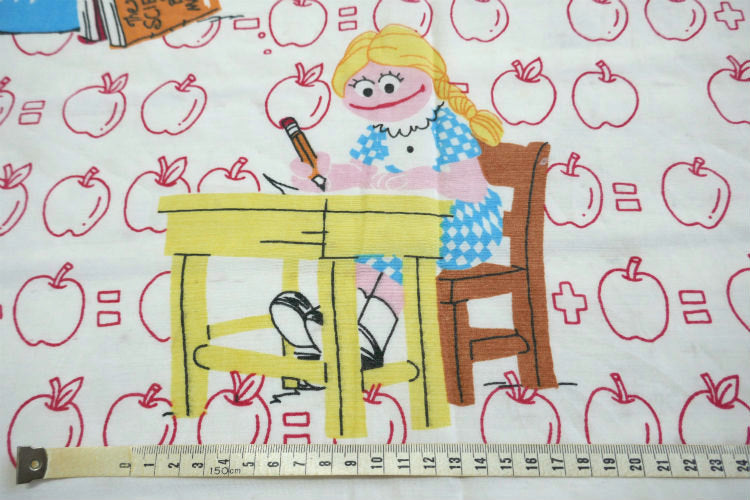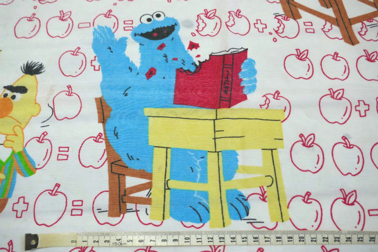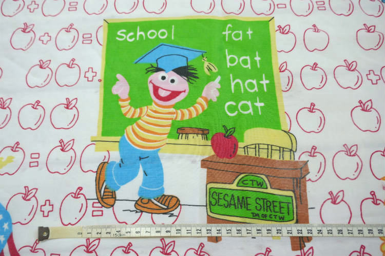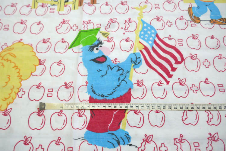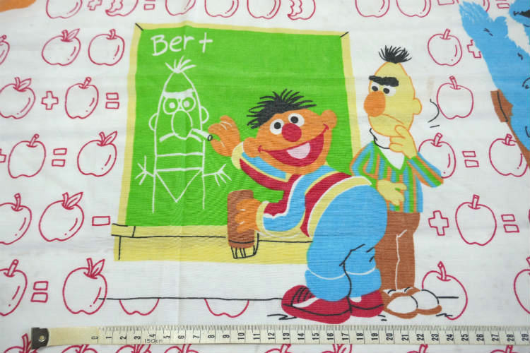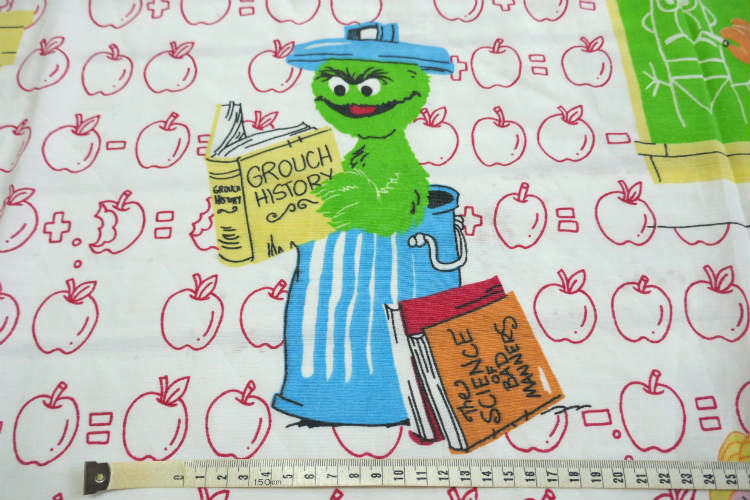 セサミストリートの仲間たち スクール お勉強 りんご柄 ヴィンテージ・ユーズドシーツ(1/2) USA