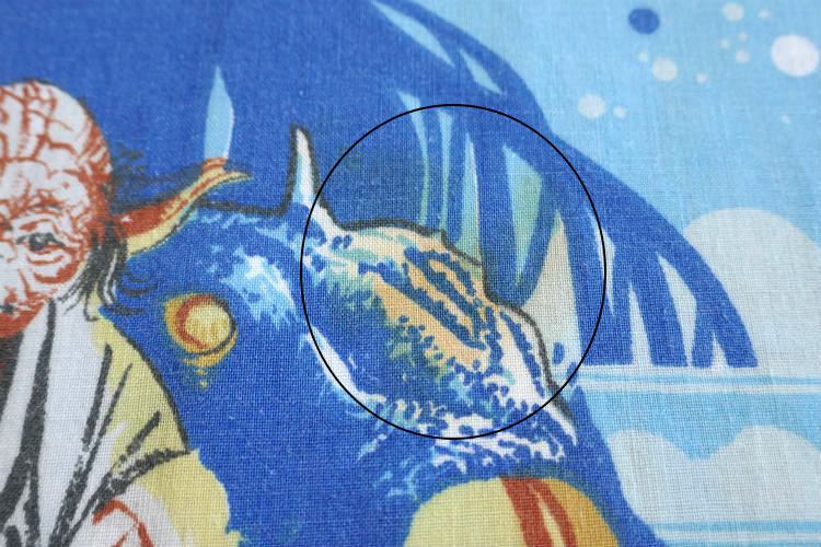 経年による多少の使用感・数カ所に薄いヨゴレ箇所がございますが、プリントの発色良く、生地もしっかりしております。