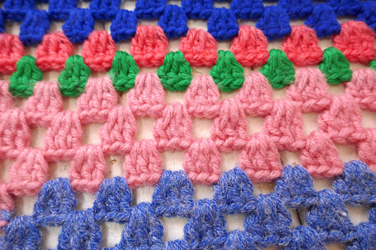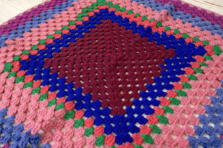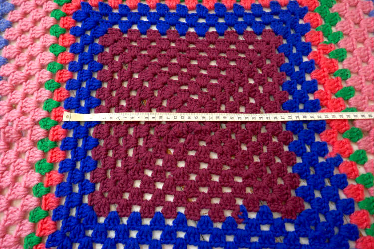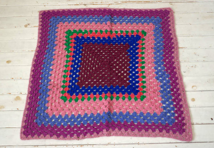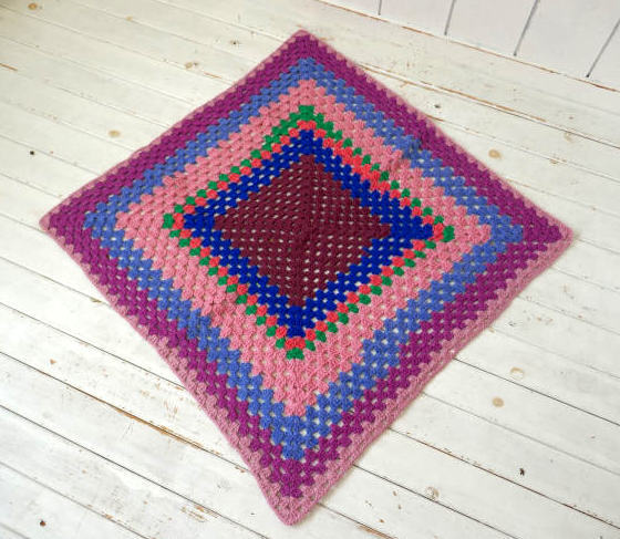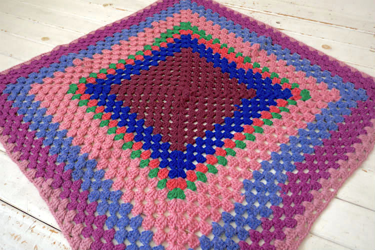 アメリカ西海岸・カリフォルニア州・ロサンゼルスで見つけました・・スクエア型のハンドメイド・ヴィンテージ・ニットブランケットです。
