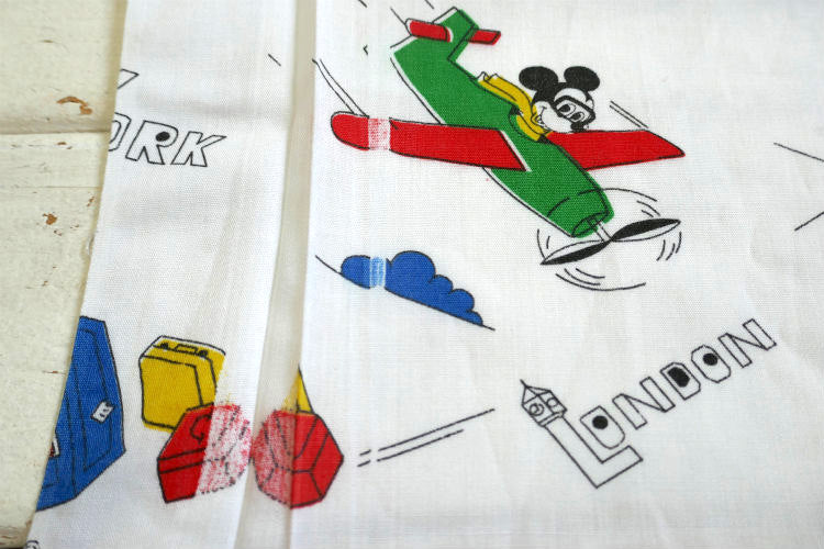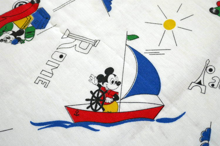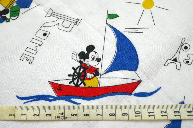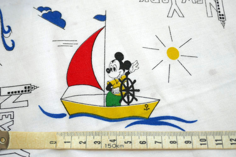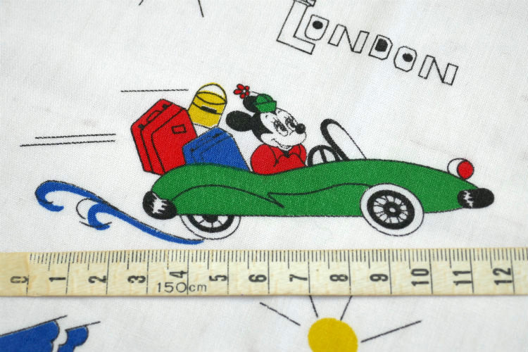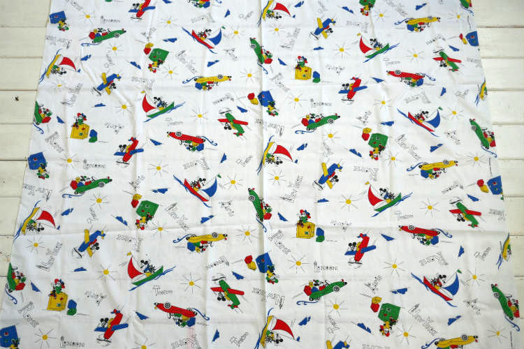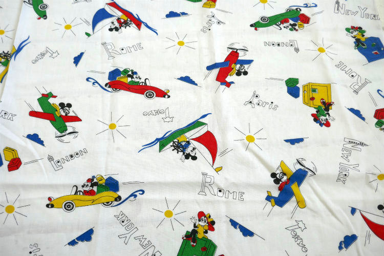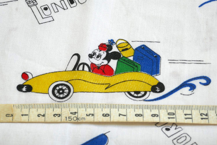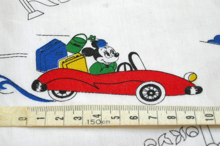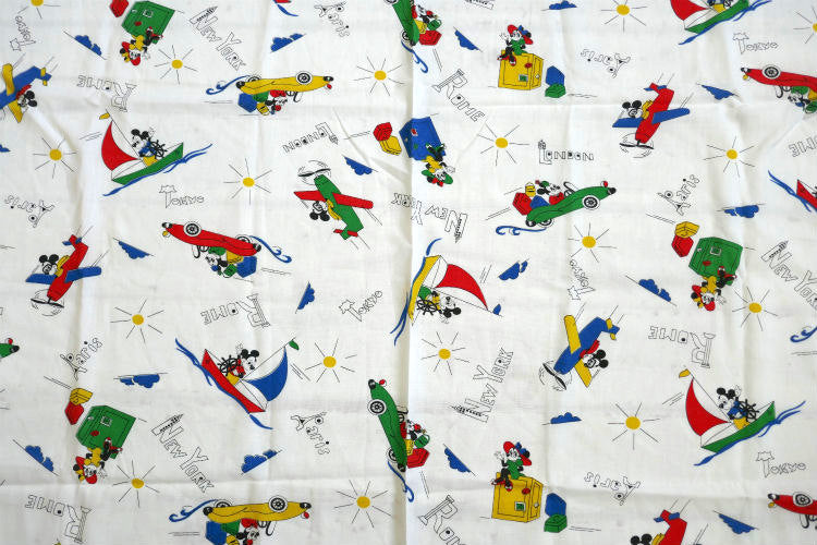 超レア ミッキー&ミニー 乗り物 トラベル柄 デッドストック ヴィンテージ ファブリック 生地 テキスタイル USA