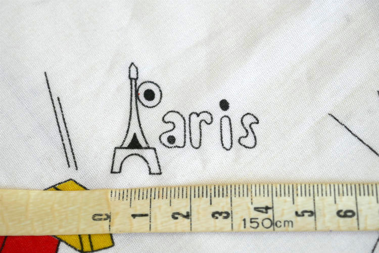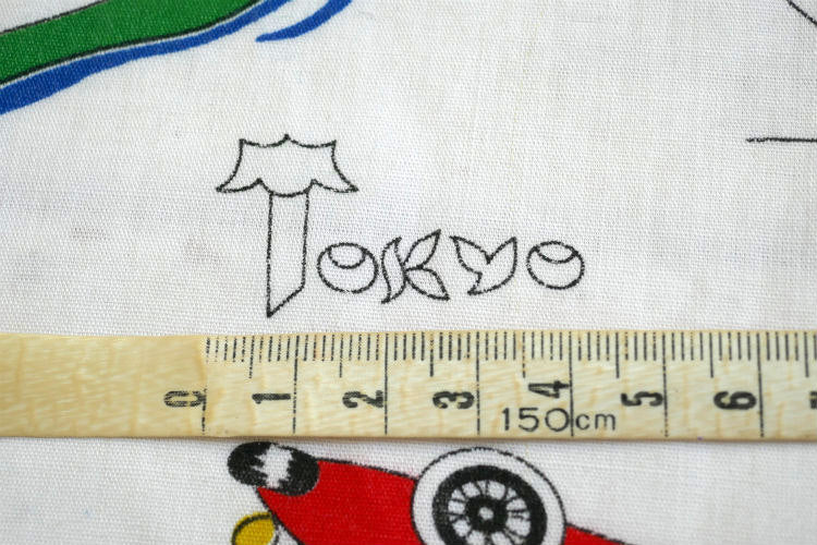 ホワイトカラーのコットン素材ベースに、ミッキーが飛行機やヨットに乗ったり、ミニーがスーツケースを沢山載せて車を運転したり、コンテナの上に座ったり、″Paris″・″London″・″Roma″・″New York″・″Tokyo″の【Travel(旅行)】楽しんでいる、とても可愛い総柄プリントです。