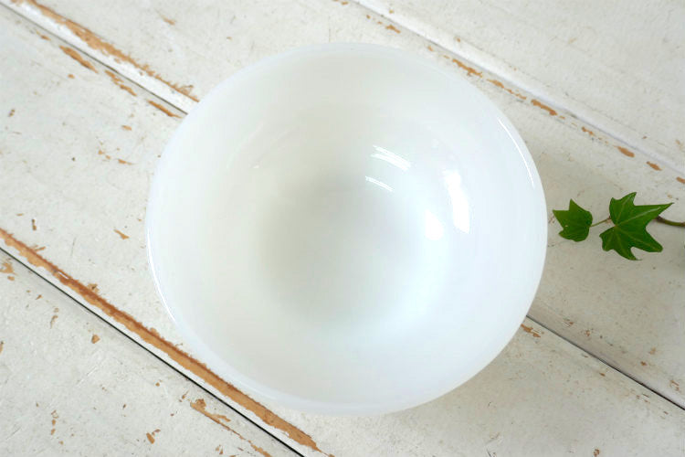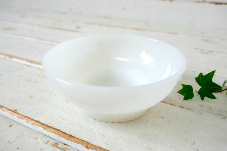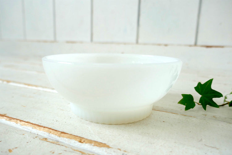 アメリカ西海岸・カリフォルニア州・サンフランシスコで見つけました・・アンカーホッキング 社『ファイヤーキング』ミルクガラス製・リブボトム・ヴィンテージ・シリアルボウル です。