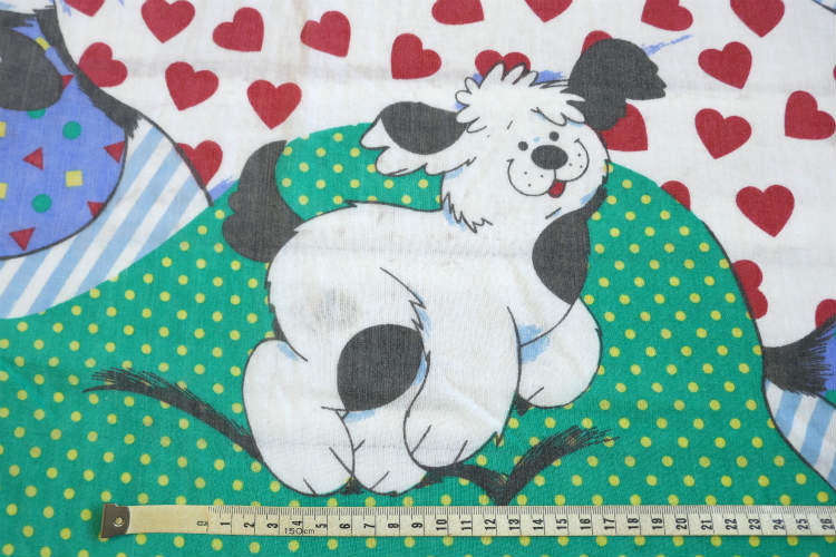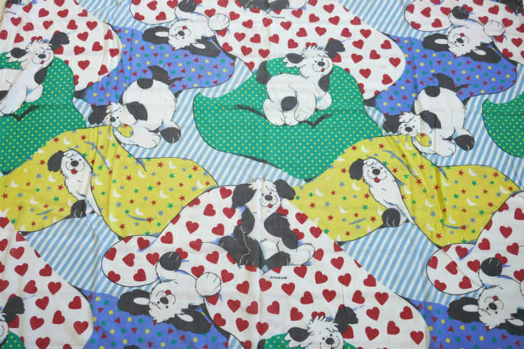 Franco Puppy 子犬 犬 パピー ハート 星 水玉 ヴィンテージ ユーズドシーツ ボックスシーツ ベッドシーツ