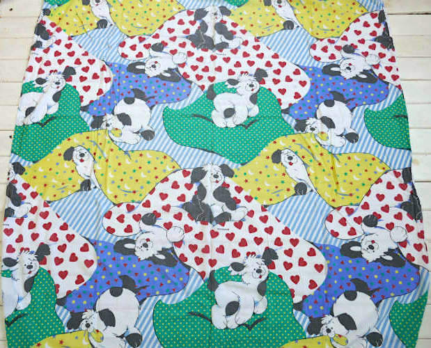 アメリカ西海岸・カリフォルニア州・ロサンゼルスで見つけました・・『Franco』子犬柄のヴィンテージ・フィットシーツです。