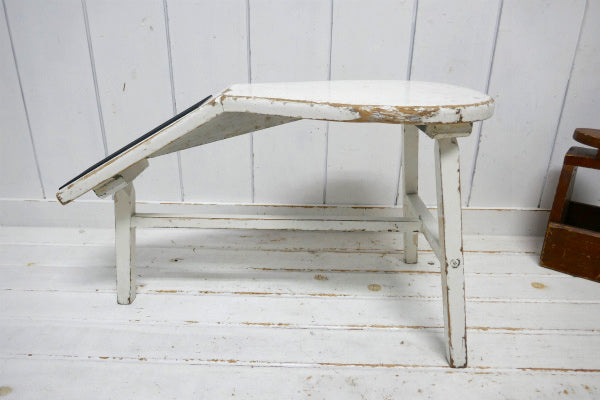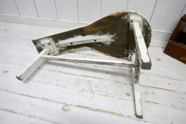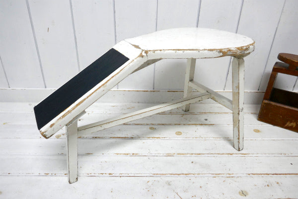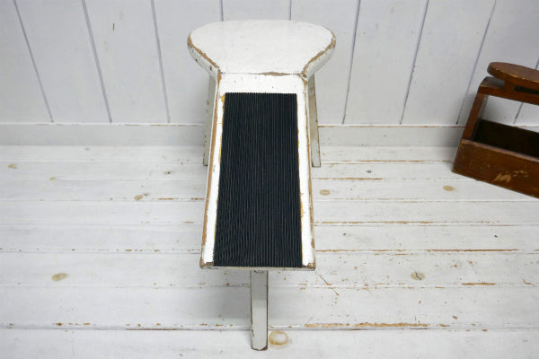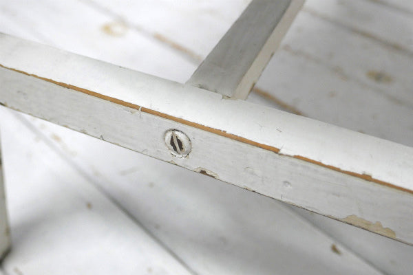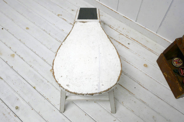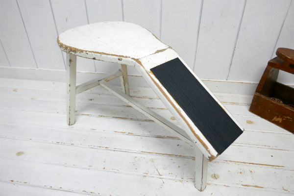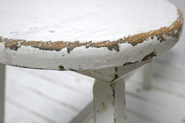 アメリカ合衆国・カリフォルニア州・サンフランシスコで見つけました・・白いペンキの剥げた木製・ヴィンテージ・フィッティング・スツール(シューシャイン Shoe Shine スツール:靴磨き用)です。