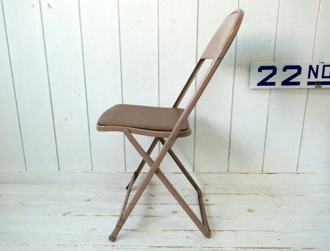 アメリカ西海岸・カリフォルニア州・サンフランシスコ郊外で見つけました・・『HAMPDEN SPECIALTY PRODUCTS, Inc.』のメタル製・ヴィンテージ・フォールディングチェアです。