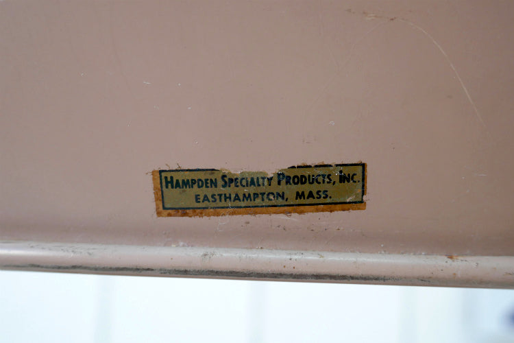 背もたれ裏のデカールに【HAMPDEN SPECIALTY PRODUCTS, Inc. EASTHAMPTON, MASS.】、座面裏のタグに【 DO NOT REMOVE THIS TAG UNDER PENALTY OF LAW / ALL NEW MATERIAL CONSISTING OF COTTON FELT / REGISTRY NO. CONNECTICUT 274(MASS:) / MADE BY HAMPDEN SPECIALTY PRODUCTS, Inc PLEASANT ST., EASTHAMPTON, MASS.】とございます。
