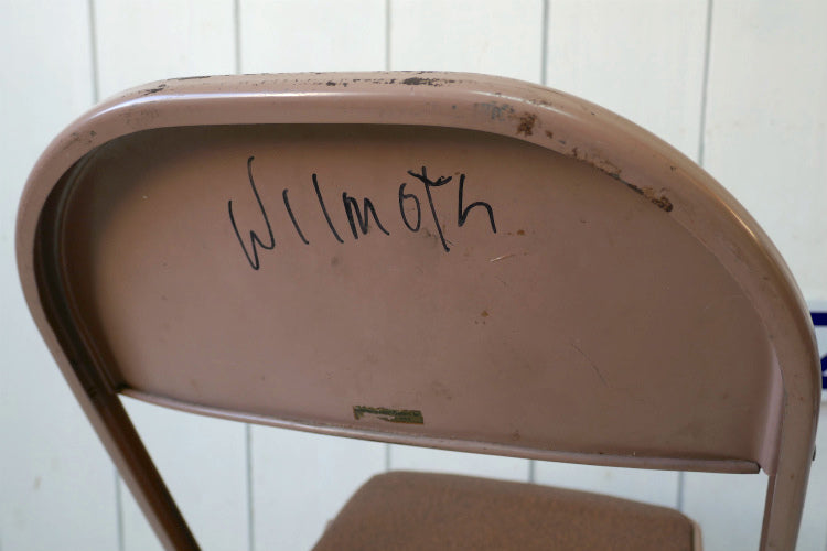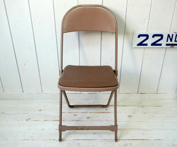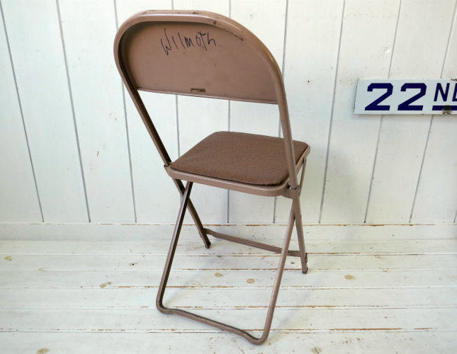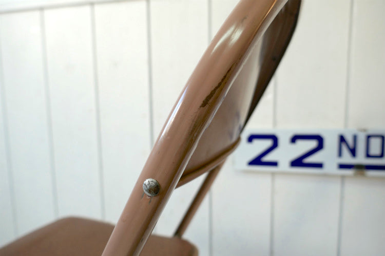 アメリカ西海岸・カリフォルニア州・サンフランシスコ郊外で見つけました・・『HAMPDEN SPECIALTY PRODUCTS, Inc.』のメタル製・ヴィンテージ・フォールディングチェアです。