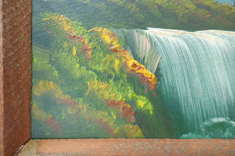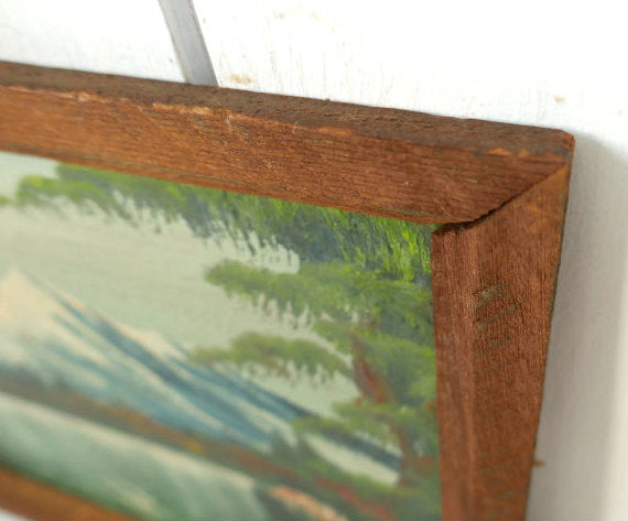 雪山 滝 針葉樹林 ハンドペイント 木製フレーム入り ヴィンテージ 油絵 風景画 アート USA