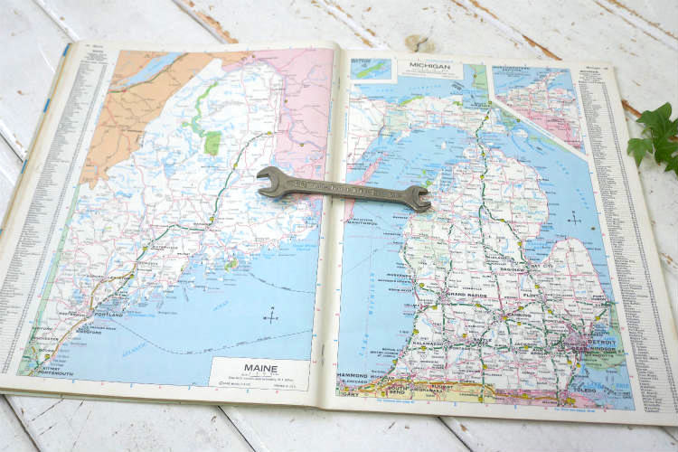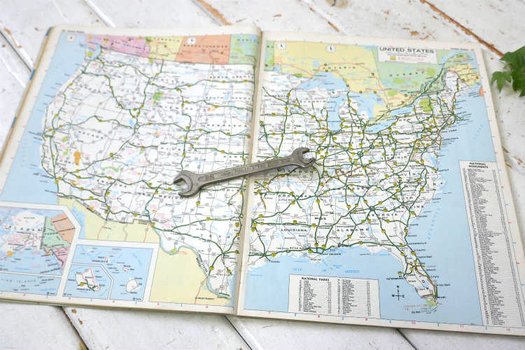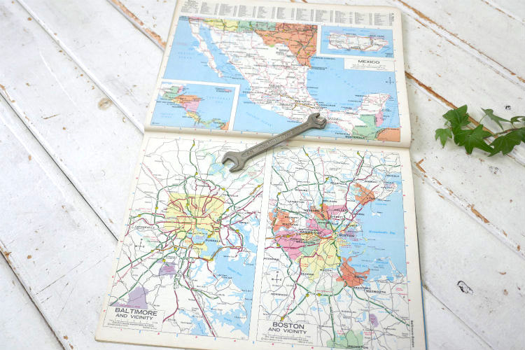 43年程前のUSA地図、資料・アメ車・愛車カスタム・インテリアの参考やコレクション・・ポスターとして切り抜き、お気に入りの広告を額&木製フレームに入れて飾ったり・・♪