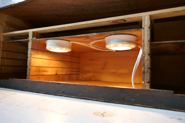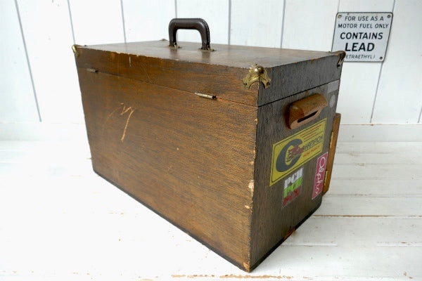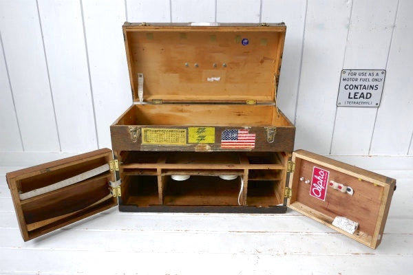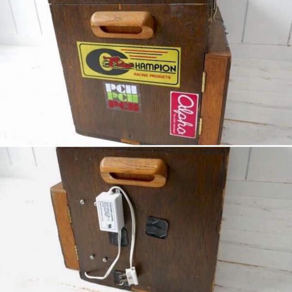 USA ステッカーチューン・ライト付き・木製・ヴィンテージ・ツールボックス・工具箱・ツールケース・ガレージ