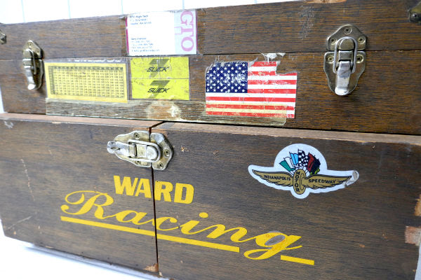 アメリカ西海岸・カリフォルニア州で見つけました・・ ビッグサイズ!アメリカンビンテージ・レーシング・ウッド・ツールボックス・工具箱です。