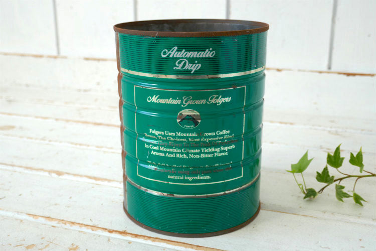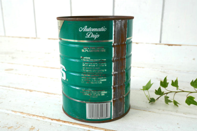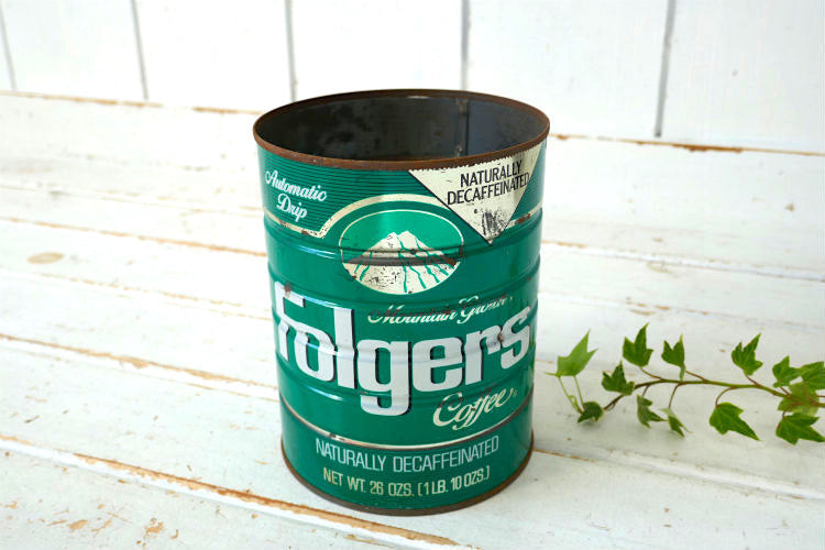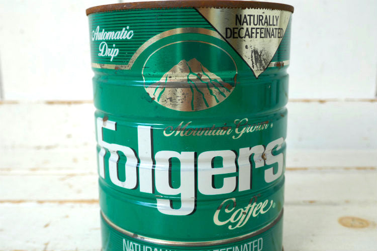 アメリカ西海岸・サンフランシスコで見つけました・・アメリカの老舗コーヒーブランド『Folgers COFFEE(フォルジャーズ)』NATURALLY DECAFFEINATEDのヴィンテージ・ティン缶です。