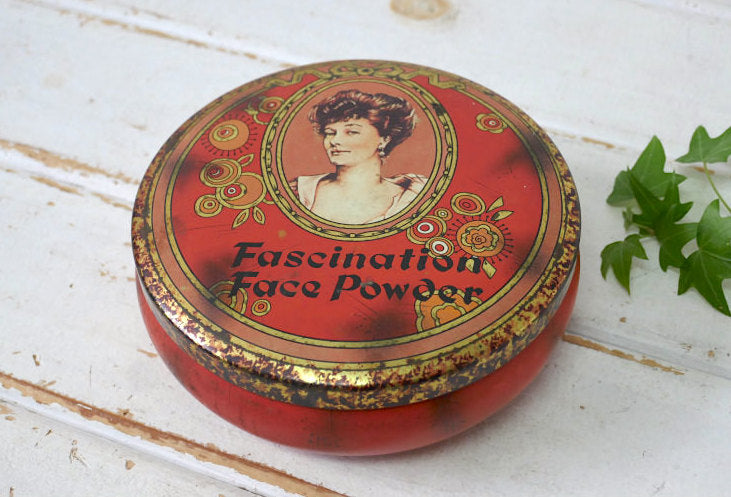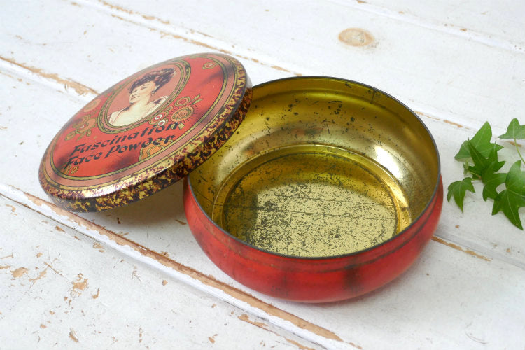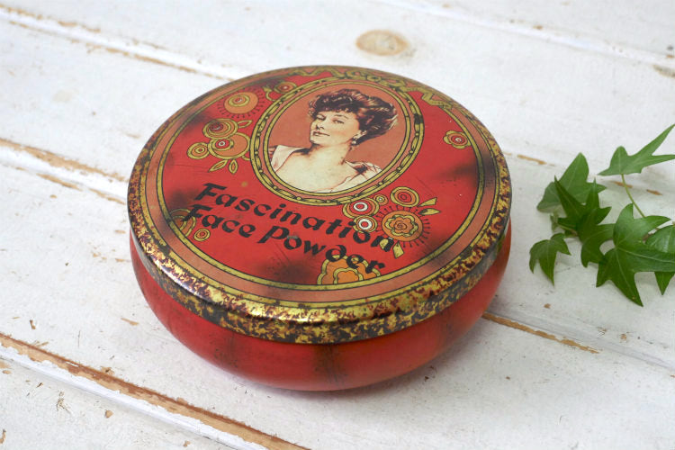 イギリス製『Daher Decorated Ware』の”Fascination Face Powder” ヴィンテージ・パウダー缶です。