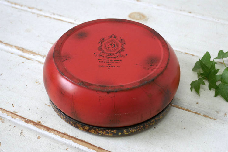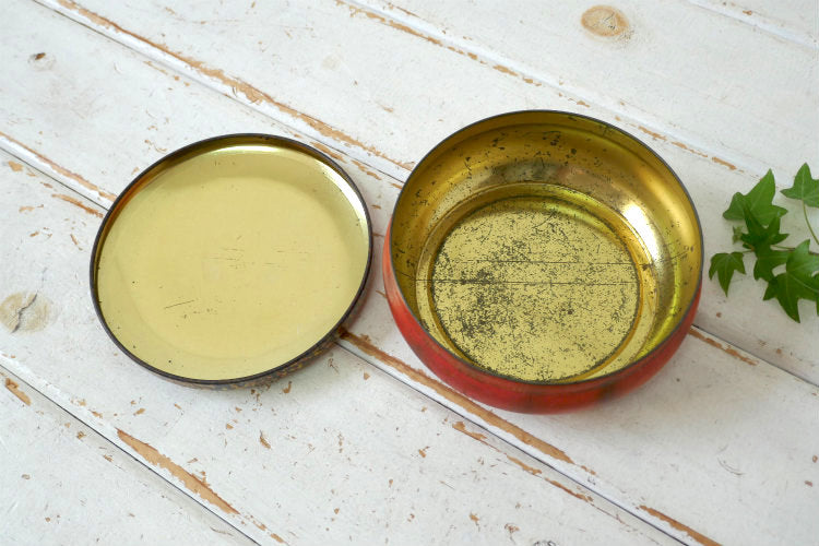 フェイスパウダーが入っていたシックな赤色のティン缶です。