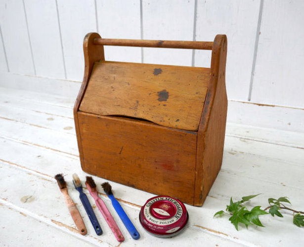 木製 シューポリッシュ缶付き 靴磨き入れ アンティーク&ヴィンテージ シューシャインボックス シューケア ツールケース 道具入れ USA