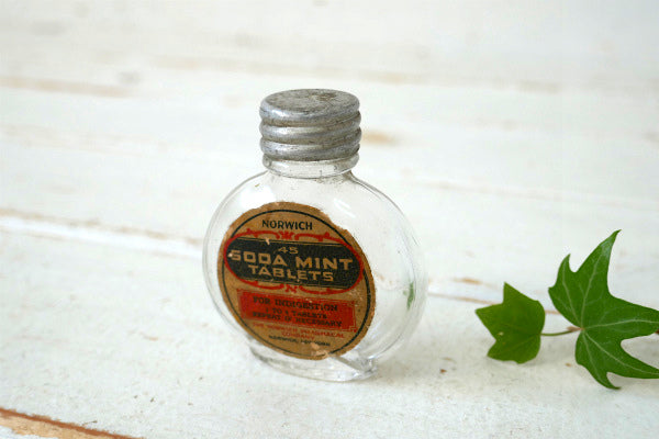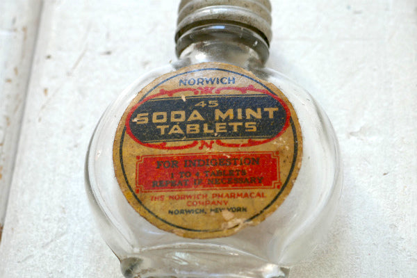 NORWICH ニューヨーク 45 SODA MINT TABLETS ソーダミント タブレット ヴィンテージ 薬瓶 メディスンボトル 薬局 小さな可愛い透明なガラスボトル