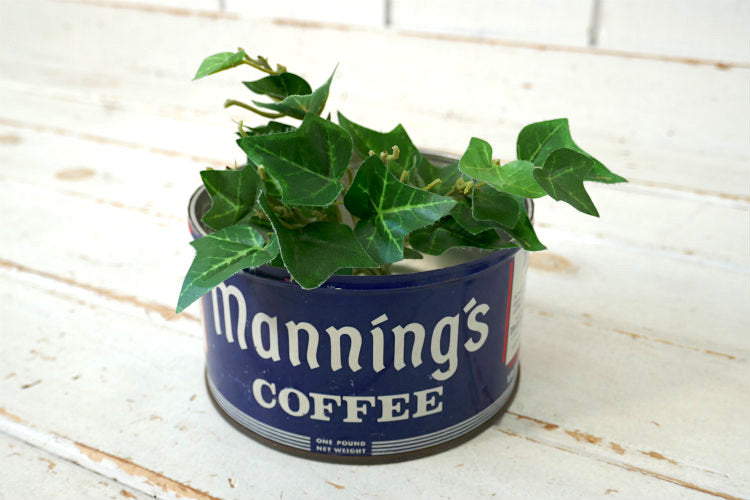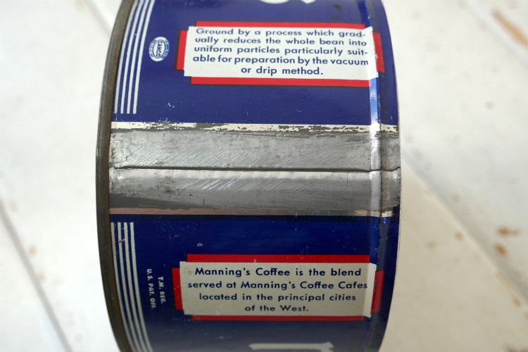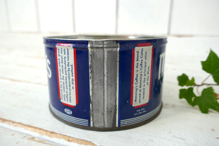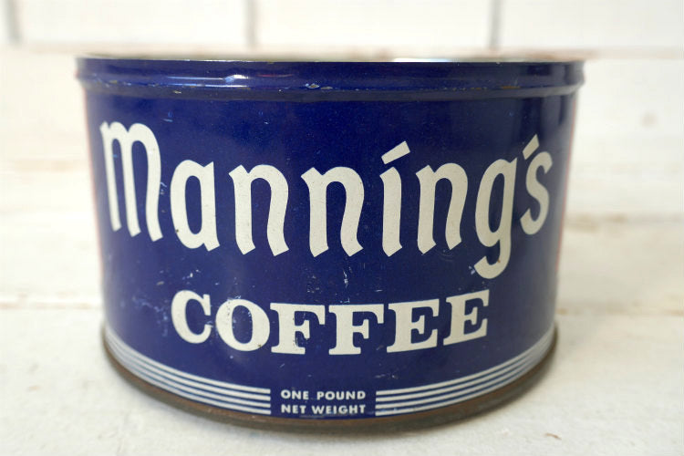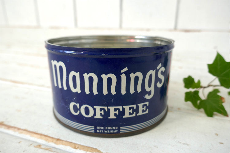 アメリカ西海岸 カリフォルニア州 ロサンゼルスで見つけました・・アメリカ・サンフランシスコのコーヒーブランド『Manning's Coffee Company』のヴィンテージ・ティン缶です。