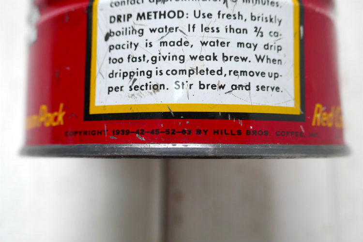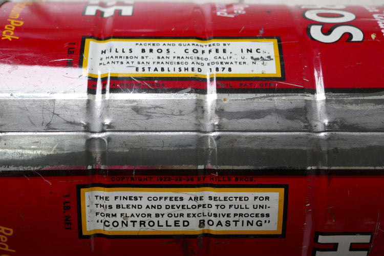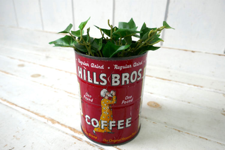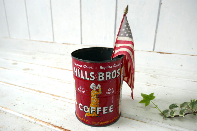アメリカ合衆国、カリフォルニア州、サンフランシスコで見つけてきました、1878年にアメリカ・サンフランシスコで誕生した老舗コーヒーブランド『HILLS BROS COFFEE(ヒルスコーヒー)』ヴィンテージ・コーヒー缶・USA缶です。
