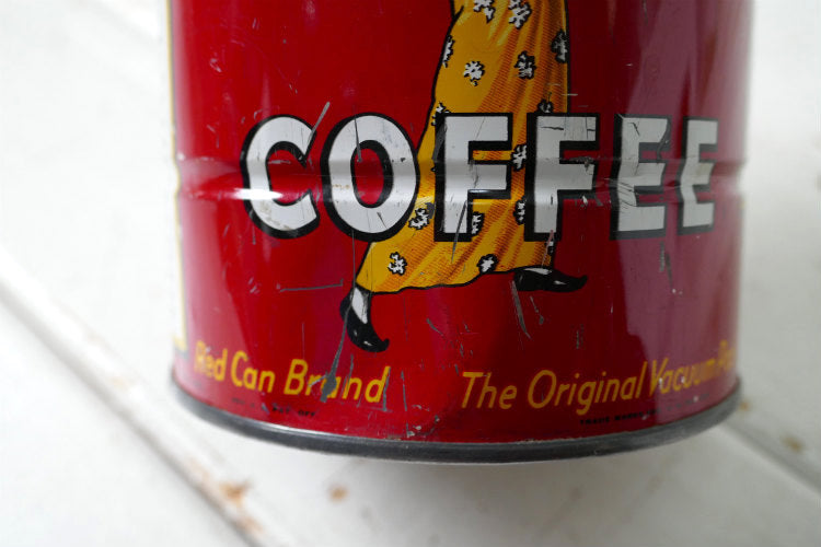 コーヒーが入っていたブリキ缶で、レッドボディにトレードマークのロゴが入っております。