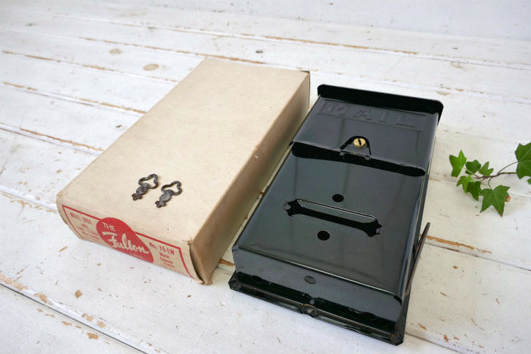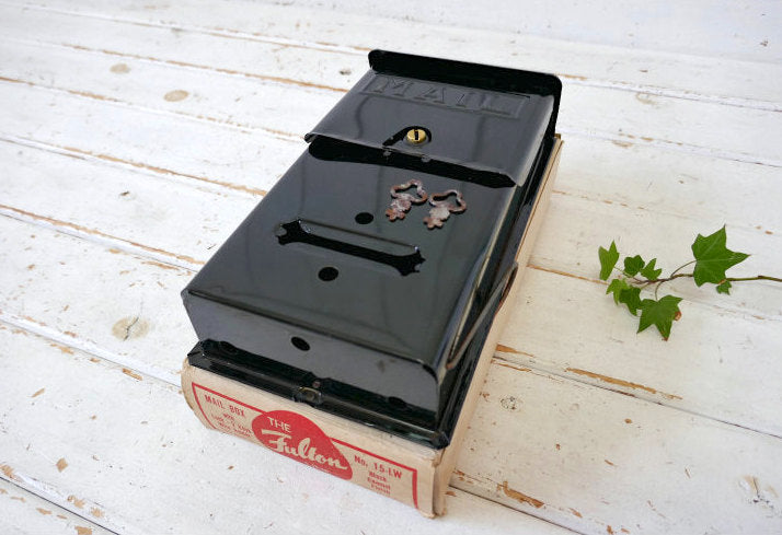 THE Fulton 鍵2本&新聞受け付き ブラック エナメル デッドストック ヴィンテージ メールボックス 郵便受け ポスト USA