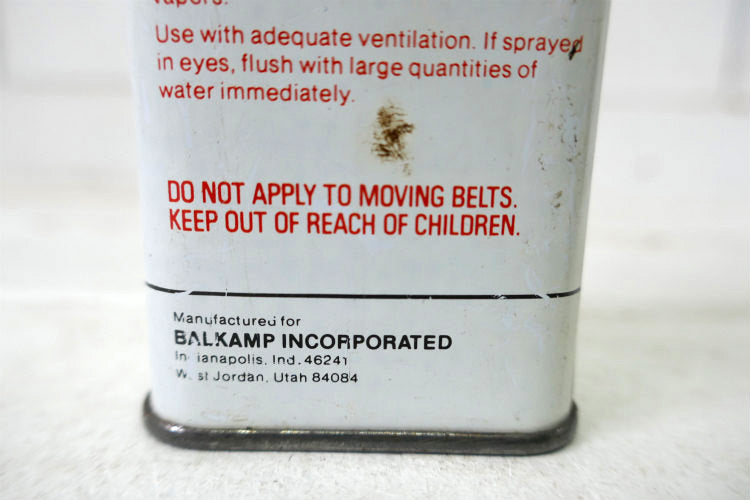 フロントに【NAPA BELT DRESSING for and fan and V-belts】、背面に【Manufactured for BALKAMP INCORPORATED Indianapolis, Ind. 46241 W st Jordan. Utah 84084】とございます。