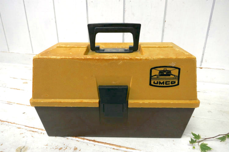 アメリカ西海岸・カリフォルニア州・サンフランシスコで見つけました・・『UMCO Corp(アムコ)』のプラスティック製・3段式・ヴィンテージ・タックルボックスです。