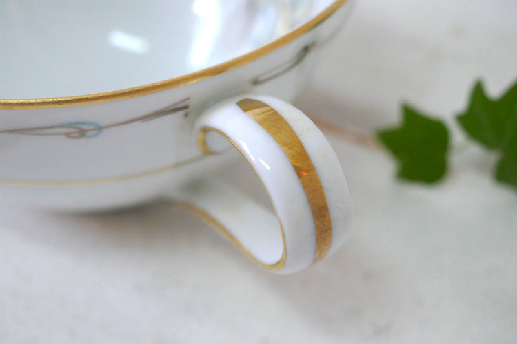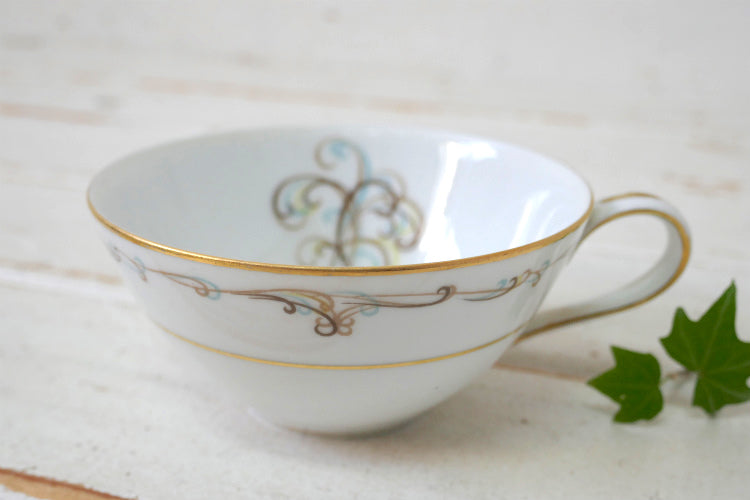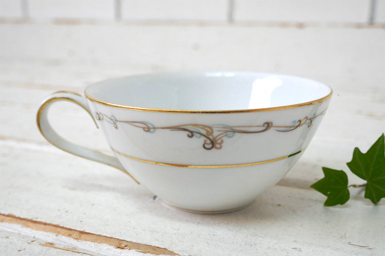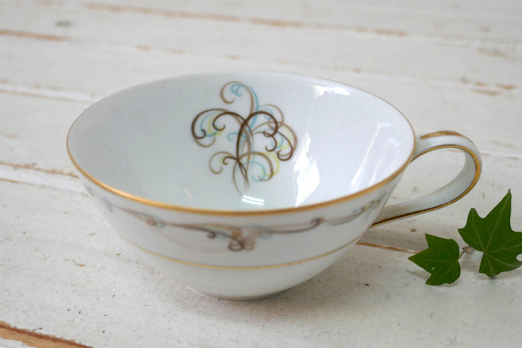オールド NORITAKE ノリタケ 1953~1960s ESTEEM 5404ブルー&ブラウン スクロールパターン セラミック ヴィンテージ ティーカップ