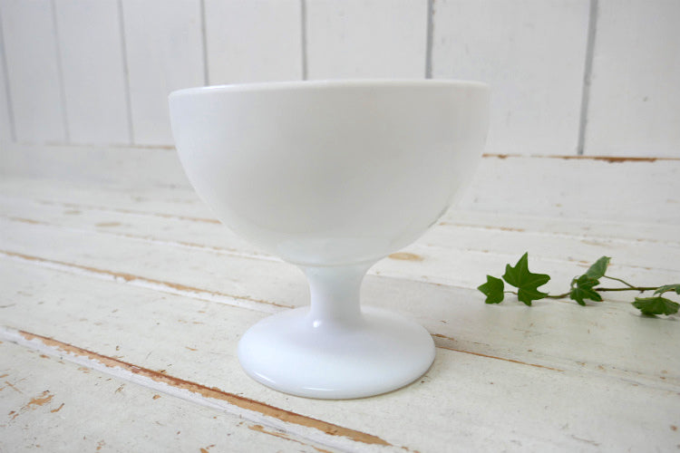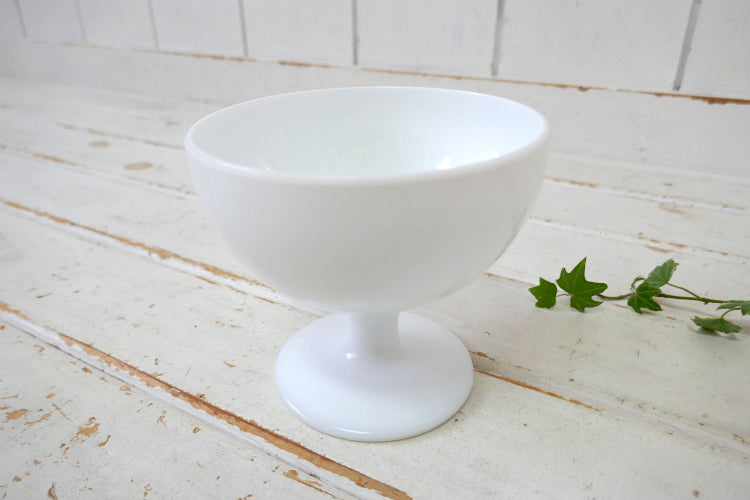 シンプルな脚付き 白色ミルクガラス製の丸いボウル シンプル可愛い素敵なデザインです。