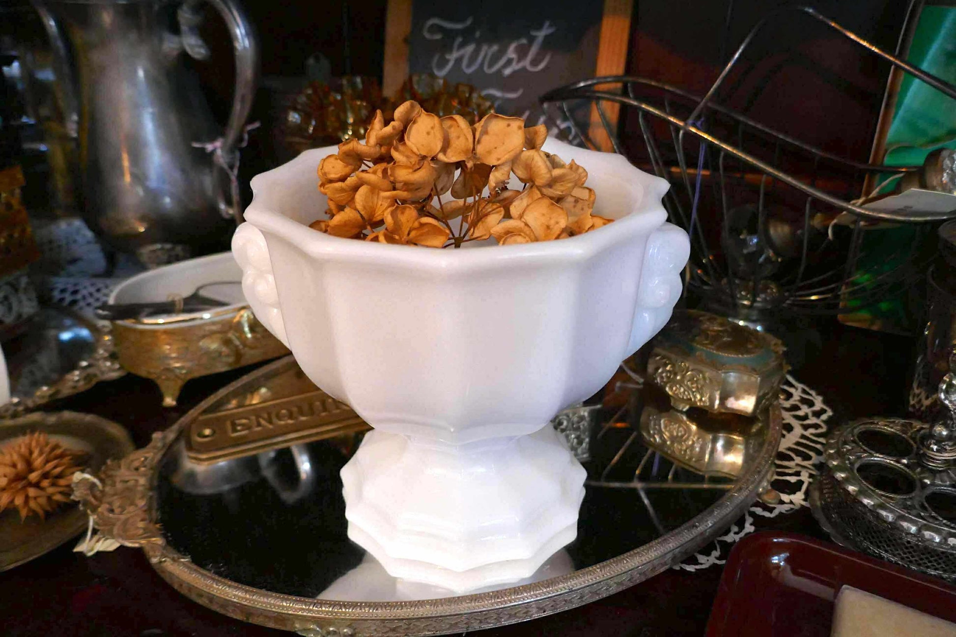E.O. Brody Co ミルクガラス製 足付き 60's ヴィンテージ フルーツボウル キャンディボウル フラワーベース 花瓶 USA