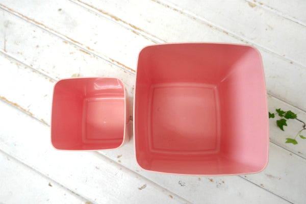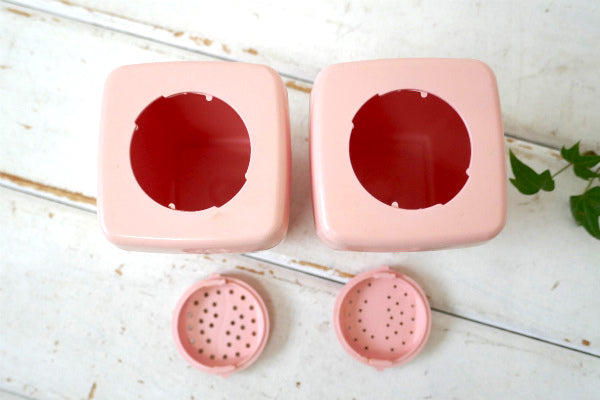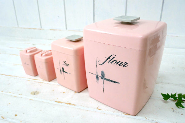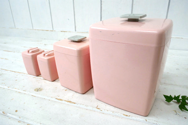 アメリカ西海岸・サンフランシスコで見つけました・・サーモンピンクカラー・ヴィンテージ・キャニスター2個+ソルト&ペッパーの計4個セットです。