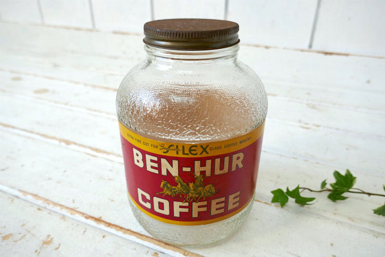 BEN-HUR COFFEE ベンハー コーヒー 40's ヴィンテージ コーヒージャー OLD ガラスジャー ガラス容器 ガラス瓶 USA