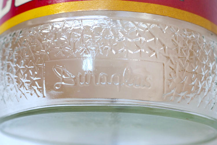 ガラス瓶は、1940年代に”Owens-Illinois Glass Company”によって商標登録された”Duraglas(デュラグラス)”製です。