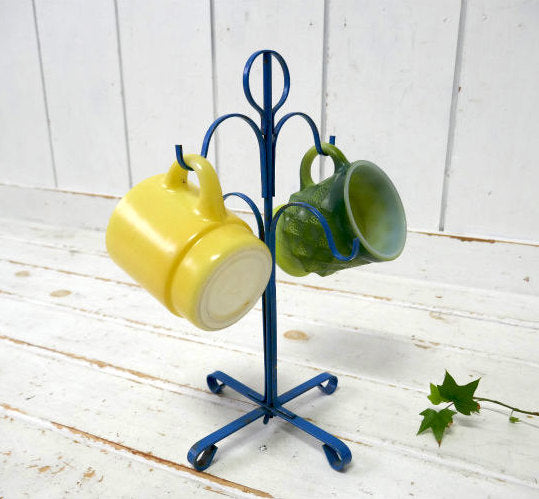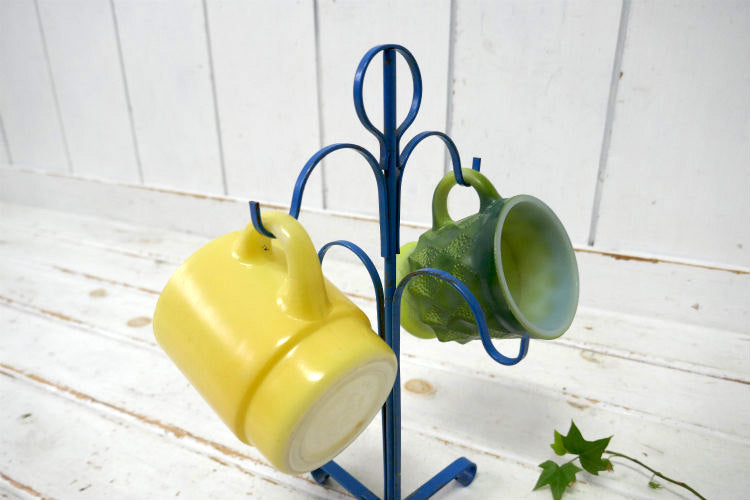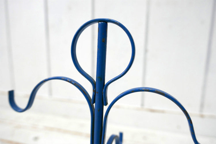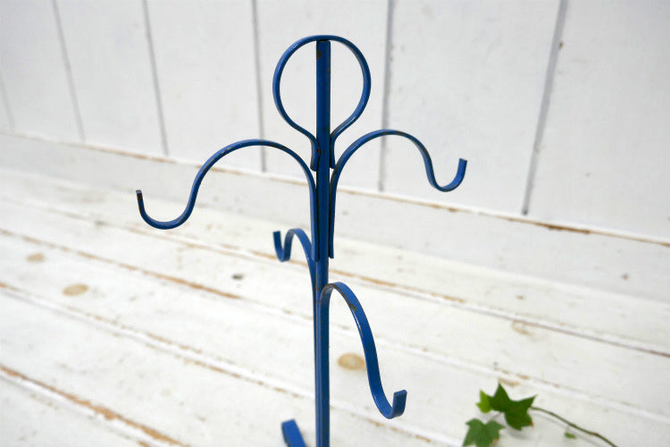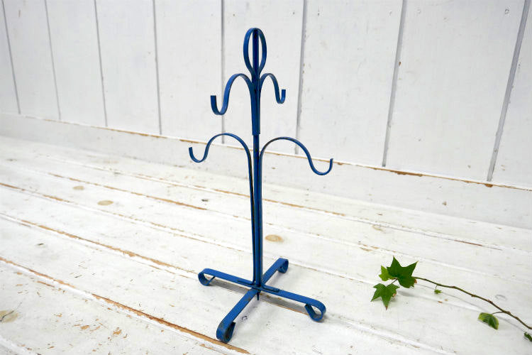 レトロ 4客用 ブルーカラー 青色 アイアン製 ヴィンテージ マグツリー マグカップホルダー 里帰り品