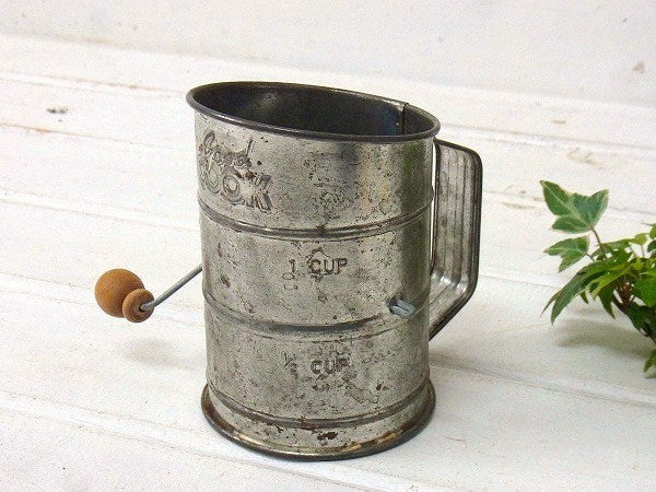 アメリカ西海岸、カリフォルニアで見つけました・・『good COOK』の1Cupサイズ・小さなティン製・アンティーク・メジャリング・シフター(粉ふるい)です。
