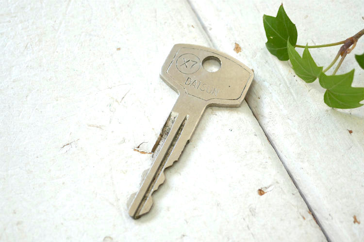 アメリカ西海岸 カリフォルニア ロサンゼルスで見つけました・・ビンテージ US DATSUN ダットサンの車鍵です。DATSUN X7 DA21 の刻印もあります。