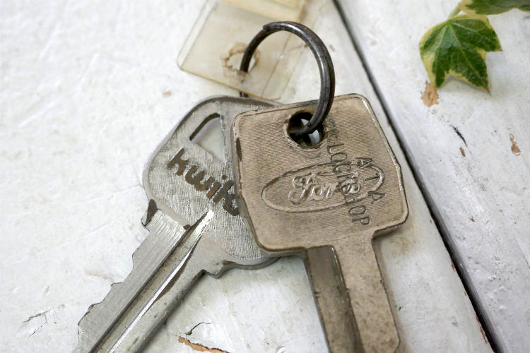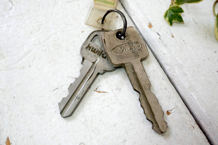 Ford A1A LOCKSHOP FAMILY OF FINE CARS/Kwikset KEY 古鍵 2本付き(アメ車 フォード etc) ヴィンテージ ネームタグ付き キーホルダーです。