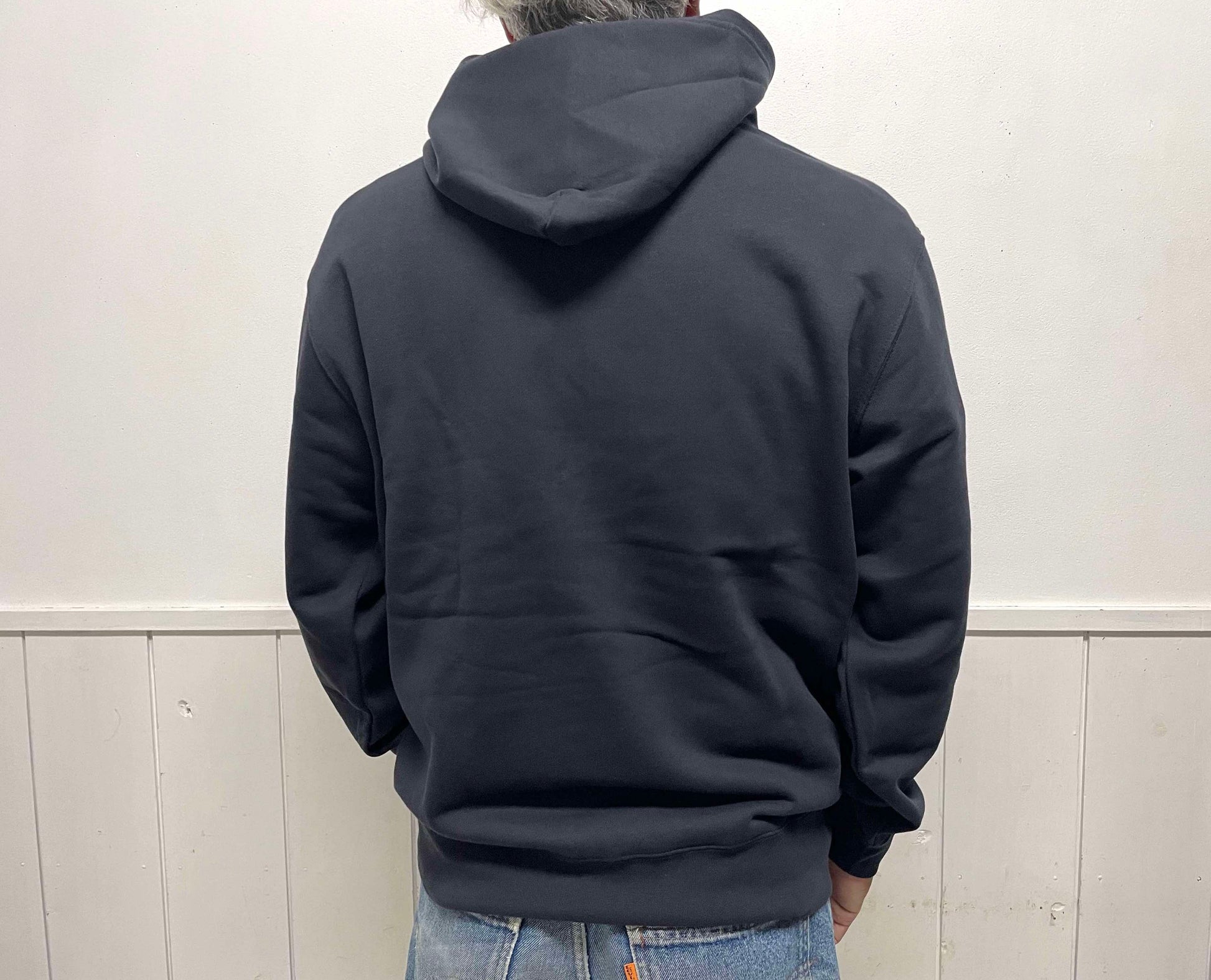 袖口・襟口のリブと身頃のシームラインはダブルステッチ始末、フードは二重仕様、細部までこだわり満載で、着込むほどに味が出るスウェットパーカーです。