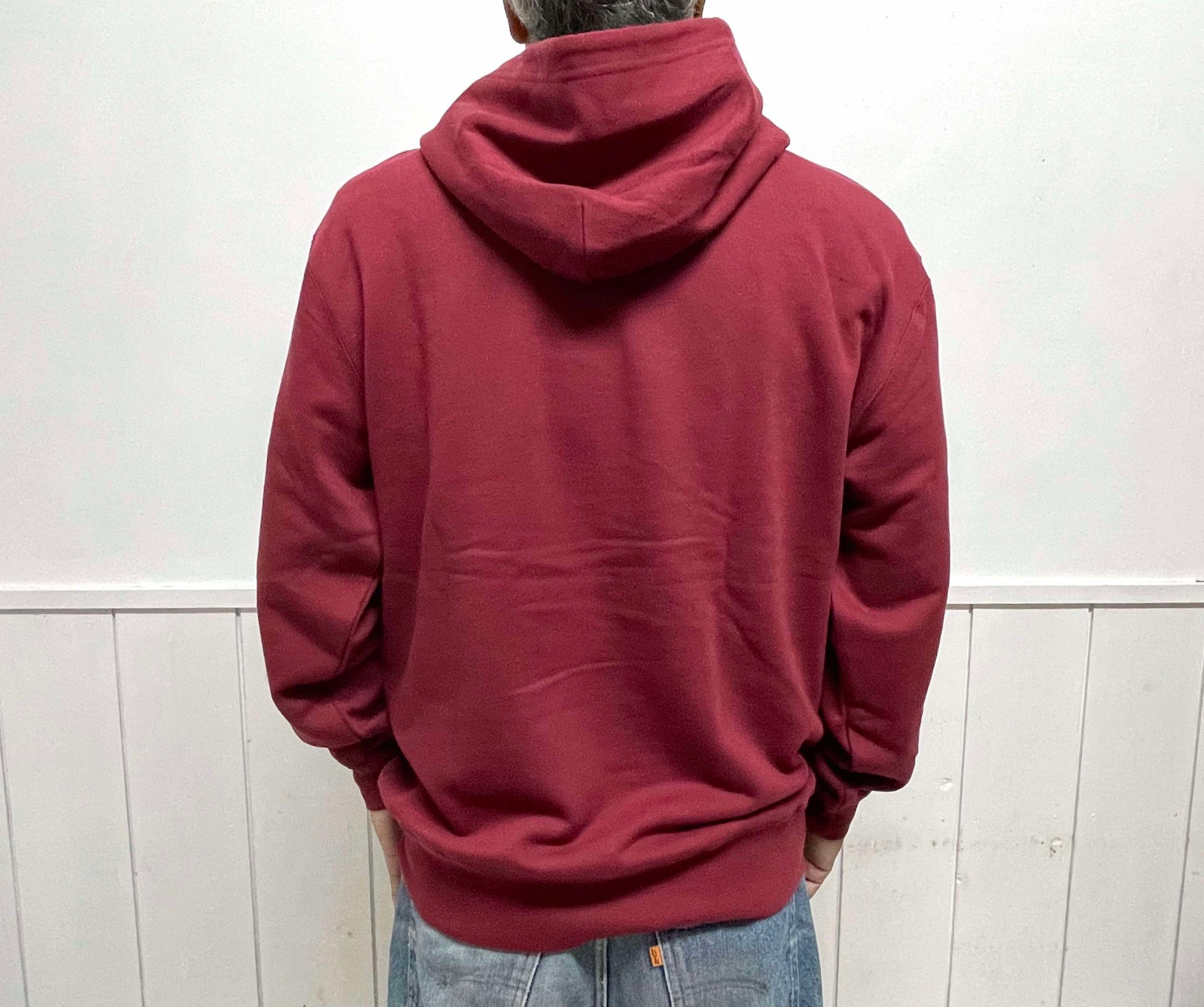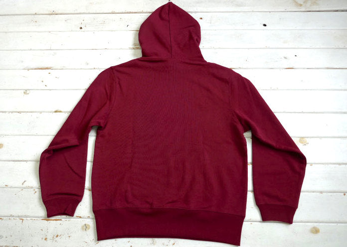 袖口・襟口のリブと身頃のシームラインはダブルステッチ始末、フードは二重仕様、細部までこだわり満載で、着込むほどに味が出るスウェットパーカーです。