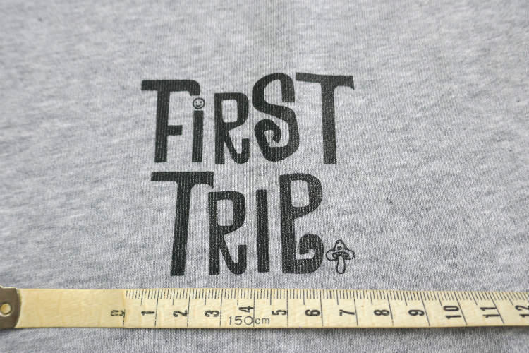 ミックスグレーボディのフロント左胸に【FIRST TRIP】のロゴプリント(W8×H7㎝)が入っています。