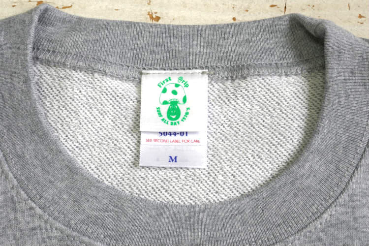First Trip ファーストトリップ スマイル&キノコ 60's デザイン グレー オリジナル クルーネック スウェット トレーナー アパレル