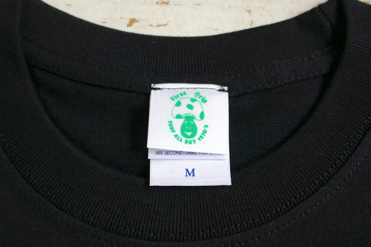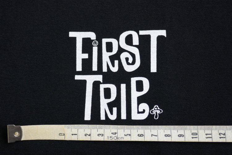 ブラックボディのフロント左胸に【FIRST TRIP】のロゴプリント(W8×H7㎝)が入っています。