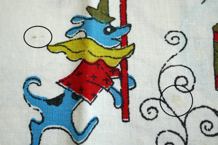 経年による多少の使用感・数カ所に薄いヨゴレ等が見られますが、プリントの発色良く、生地もしっかりしております。