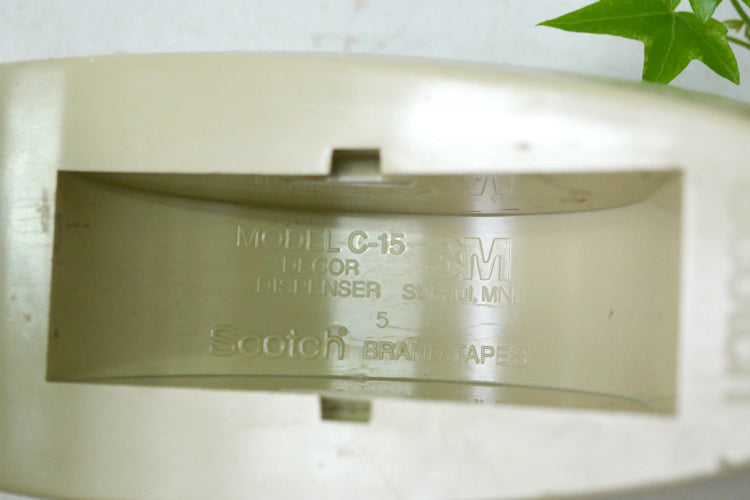 後方上部に【Scotch】、内側に【3M MODEL C-15 DECOR DISPENSER St. Paul, MN. 5 Scotch BRAND TAPES】とエンボス文字が入っています。
