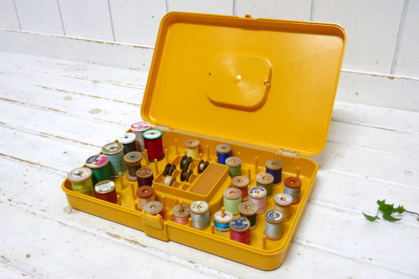 WILSON マスタードイエロー・ヴィンテージ・糸巻き 収納ケース・スプールホルダー・裁縫箱 USA