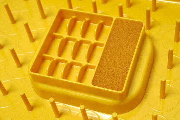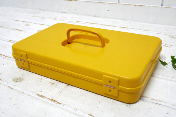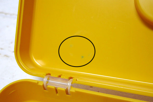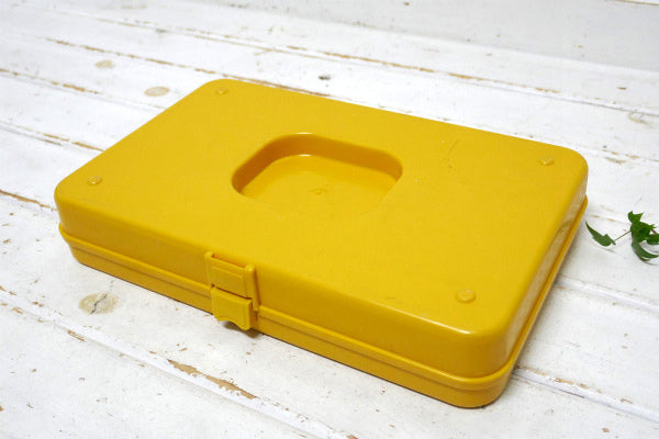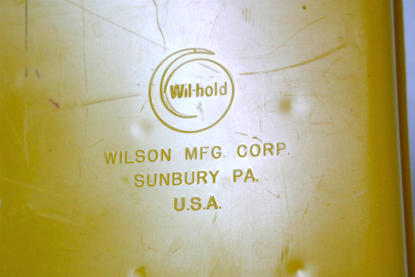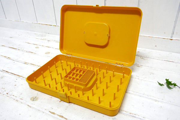 アメリカ中西部・シカゴで見つけました・・『WILSON MFG CORP.』のマスタードイエロー色・プラスティック製・ヴィンテージ・糸巻き収納ケースです。