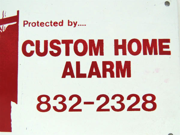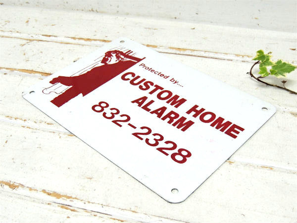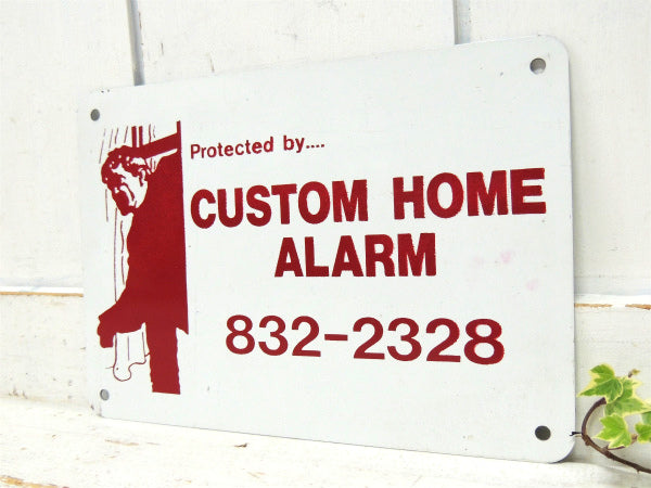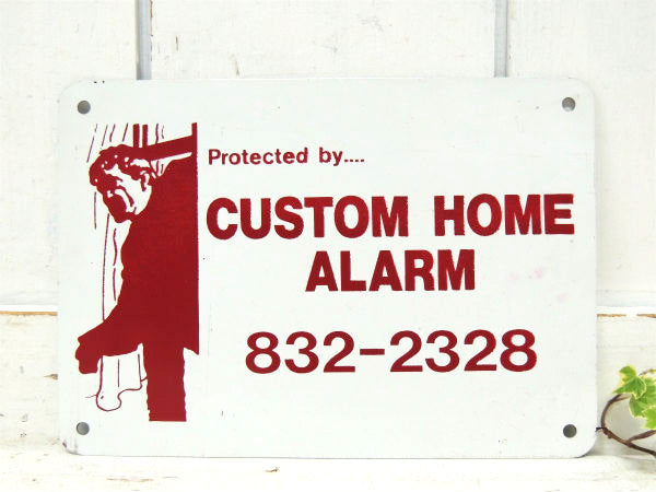 アメリカ西海岸・サンフランシスコで見つけました・・防犯「CUSTOM HOME ALARM 832-....」(侵入禁止・アラーム・警戒中!)の標識・ヴィンテージ・サイン・スチール製の看板です。 デッドストック ビス穴は4箇所あります。