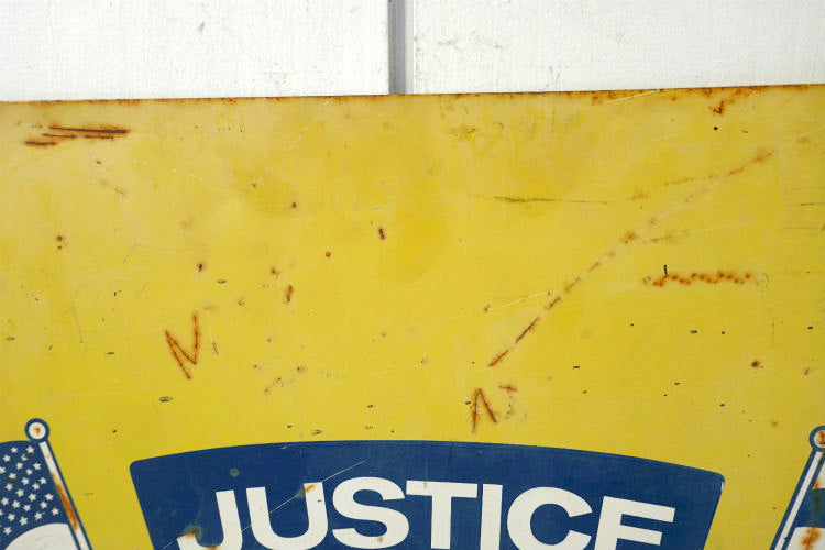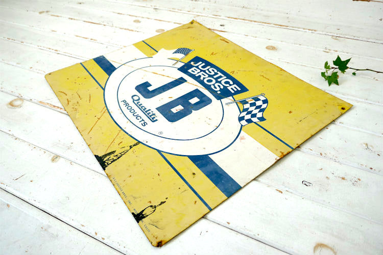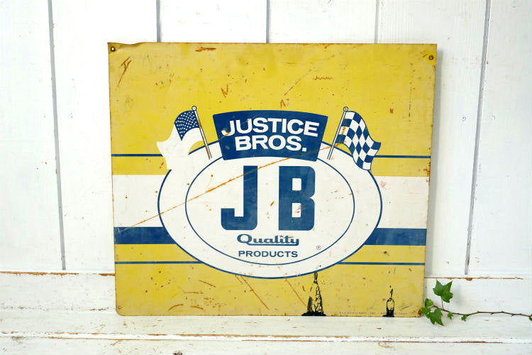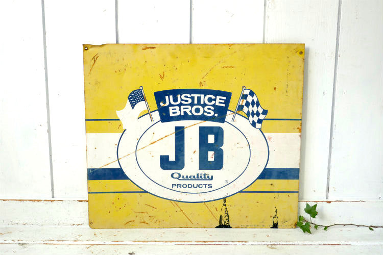 JUSTICE BROS ジャスティス ブラザーズ オイルメーカー ヴィンテージ 看板 サインプレート 星条旗&チェッカーフラッグUSA