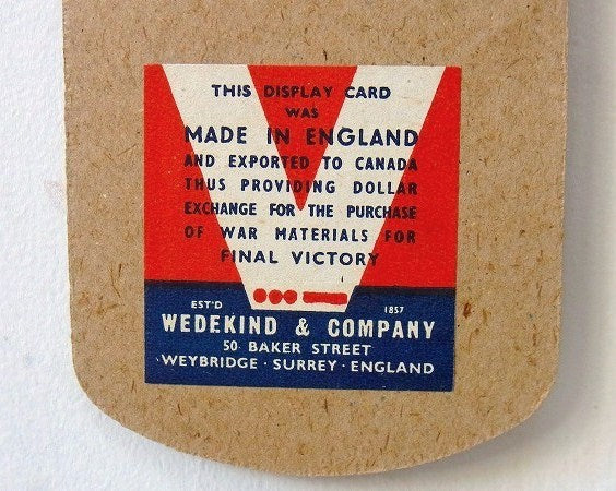 背面ラベルに【THIS DISPLAY CARD WAS MADE IN ENGLAND WEDEKIND&COMPANY】とございます。