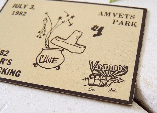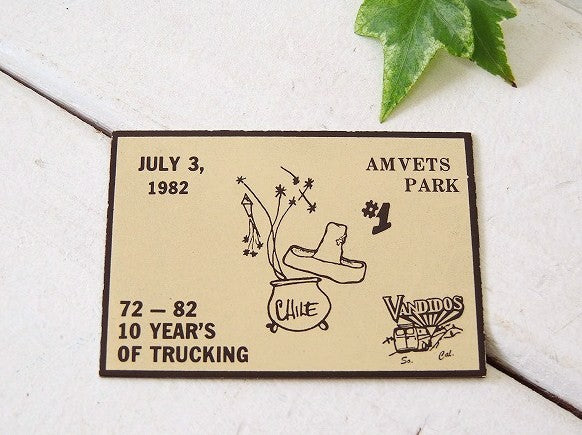 VANDIDOS /So.Cal. /AMVETS PARK/#1/JULY 3, 1982 /72-82 10 YEAR7S OF TRUCKING/CHILE オリジナル ステッカー Vanning:バニングチームの(アルミプレート・ダッシュボード ステッカー)デッドストックです。